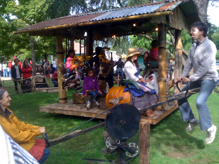 Salite a bordo di una giostra quadrata che gira in tondo!