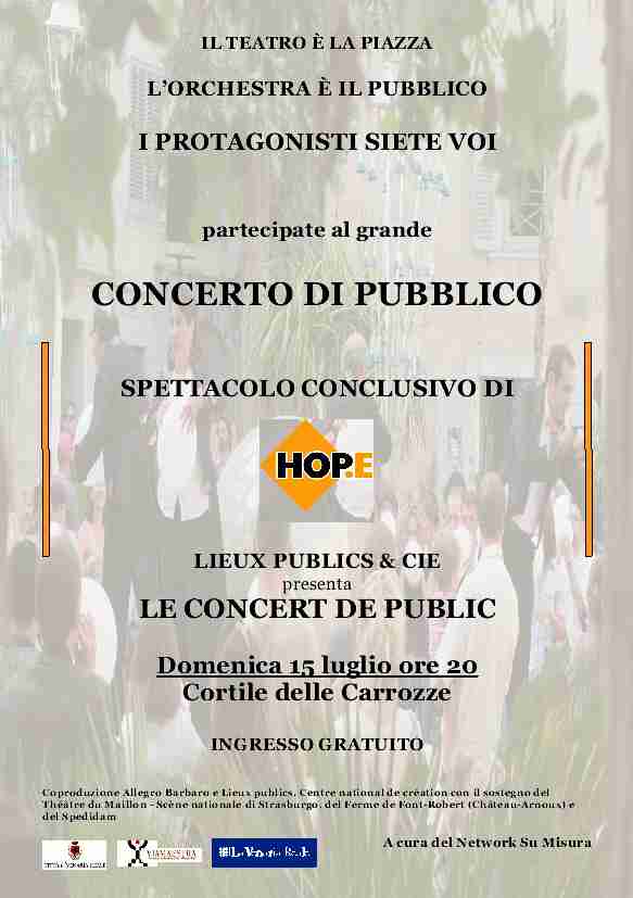 Questa  performance ha ricevuto il sostegno alla produzione dal Network IN SITU nel quadro del progetto META. Tale progetto è finanziato con il supporto della Commissione Europea (DGEAC – Programma Cultura)