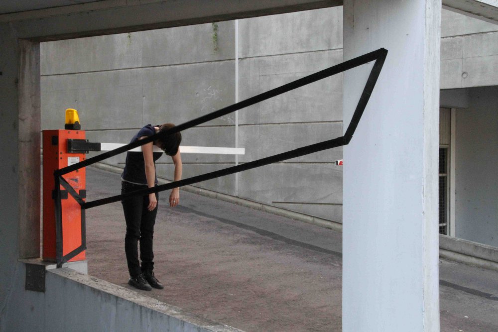 Due ballerine interrompono il ritmo dei passanti, forzando ulteriormente la dissonanza. Le linee sono disegnate frazionando lo spazio… Stanno definendo una cornice o APRENDO PROSPETTIVE verso l’altrove? I suoni si mescolano e i segnali si fondono; il flusso del traffico ha cambiato direzione